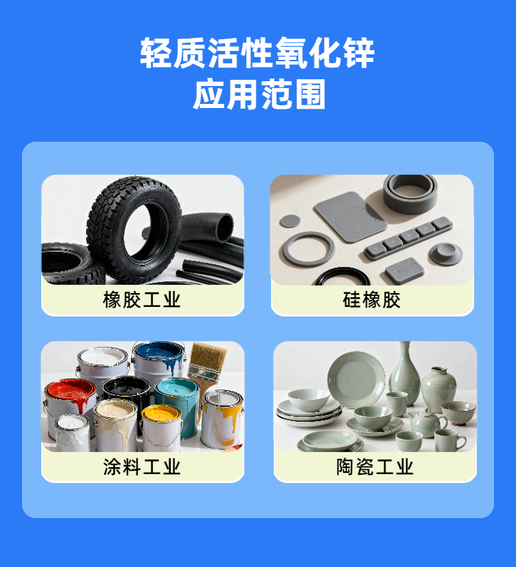 本品采用成熟的 濕法 生產工藝(通常以優(yōu)質鋅鹽為原料,經精密合成、過濾、低溫干燥等特殊工序制得),是一種具有 較高比表面積 、 較低堆積密度 和 良好反應活性 的白色或微黃色微細粉末。其顆粒形態(tài)疏松,具有輕質、易分散的特點。本品主要應用于橡膠、硅橡膠、涂料、陶瓷等對分散性和比重有特定要求的工業(yè)領域。